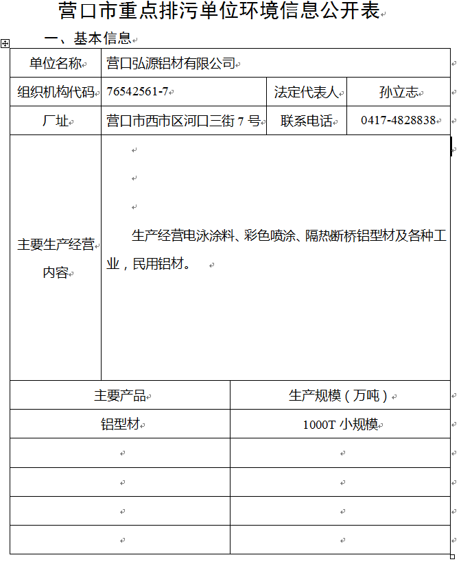 營(yíng)口市重點(diǎn)排污單位環(huán)境信息公開表